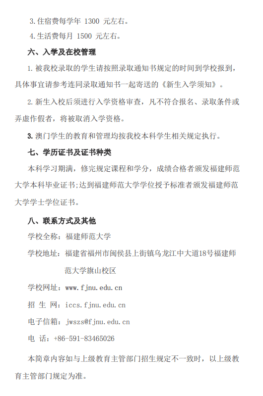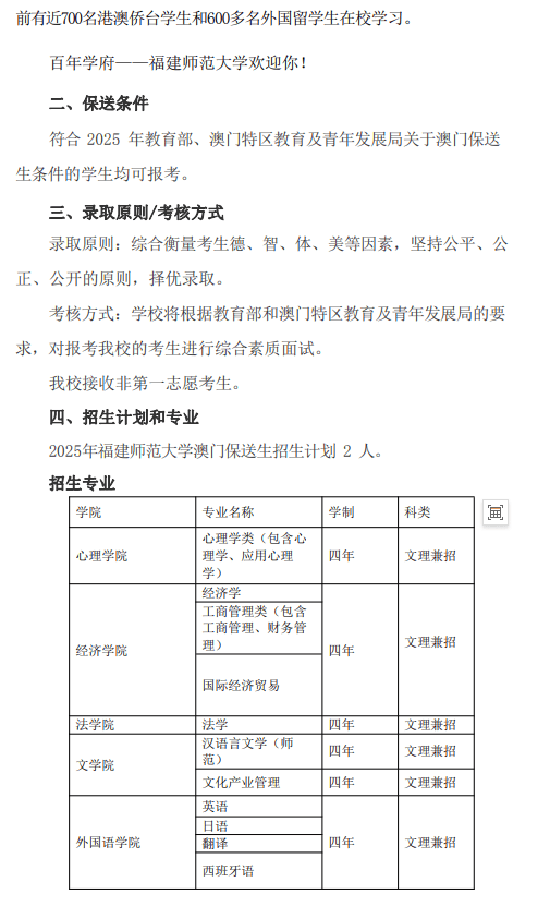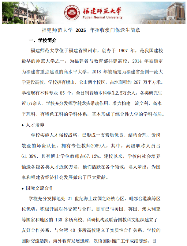福建师范大学2025年招收澳门保送生简章